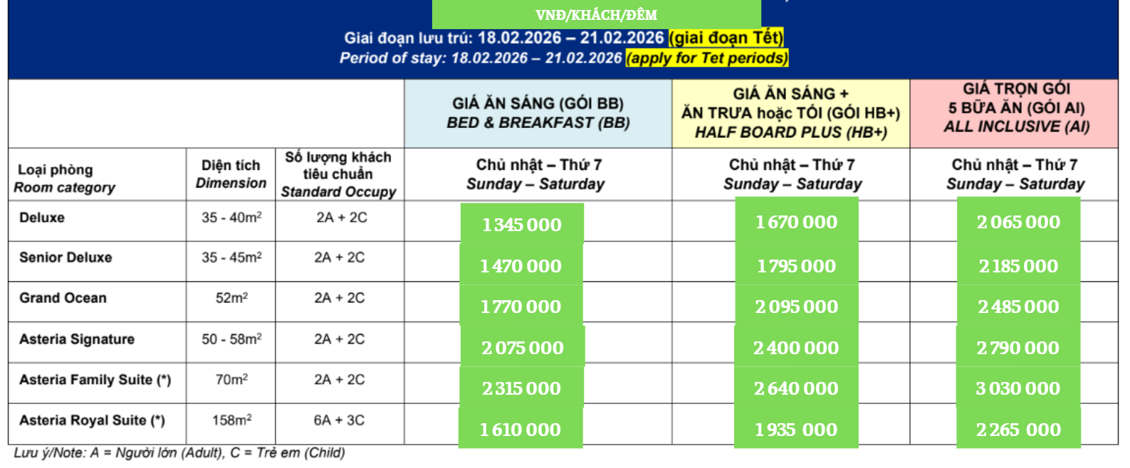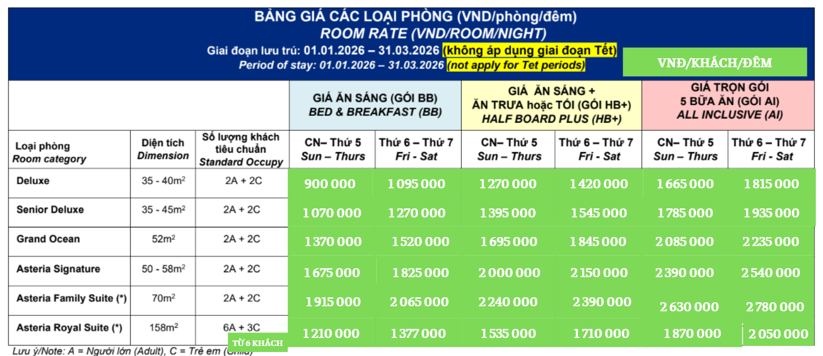 Khuyến mãi miễn phí thêm 1 trẻ em dưới 12 tuổi và 1 trẻ em dưới 6 tuổi, ngủ chung bố mẹ .