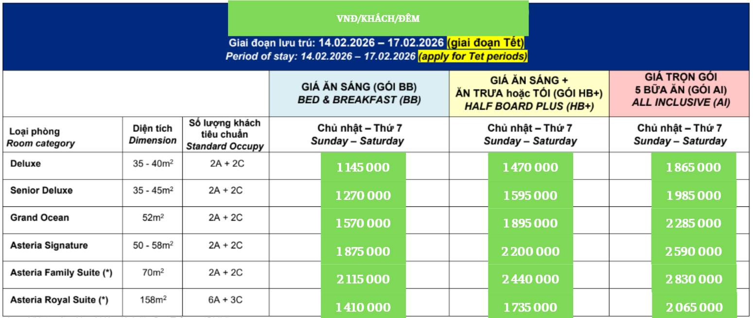 ASTERIA MŨI NÉ RESORT COMBO 5 BỮA ĂN+ĐỒ UỐNG KO GIỚI HẠN