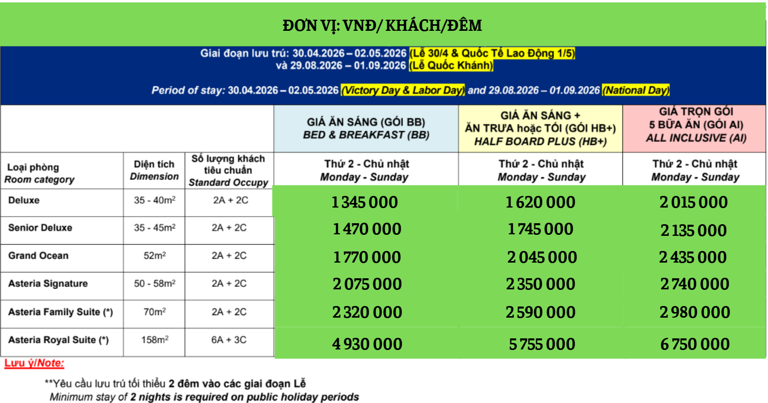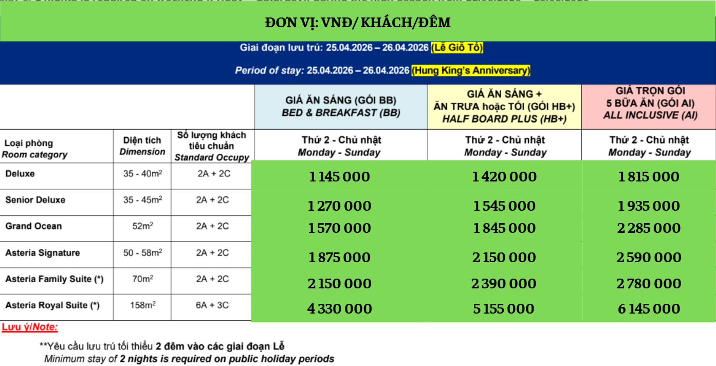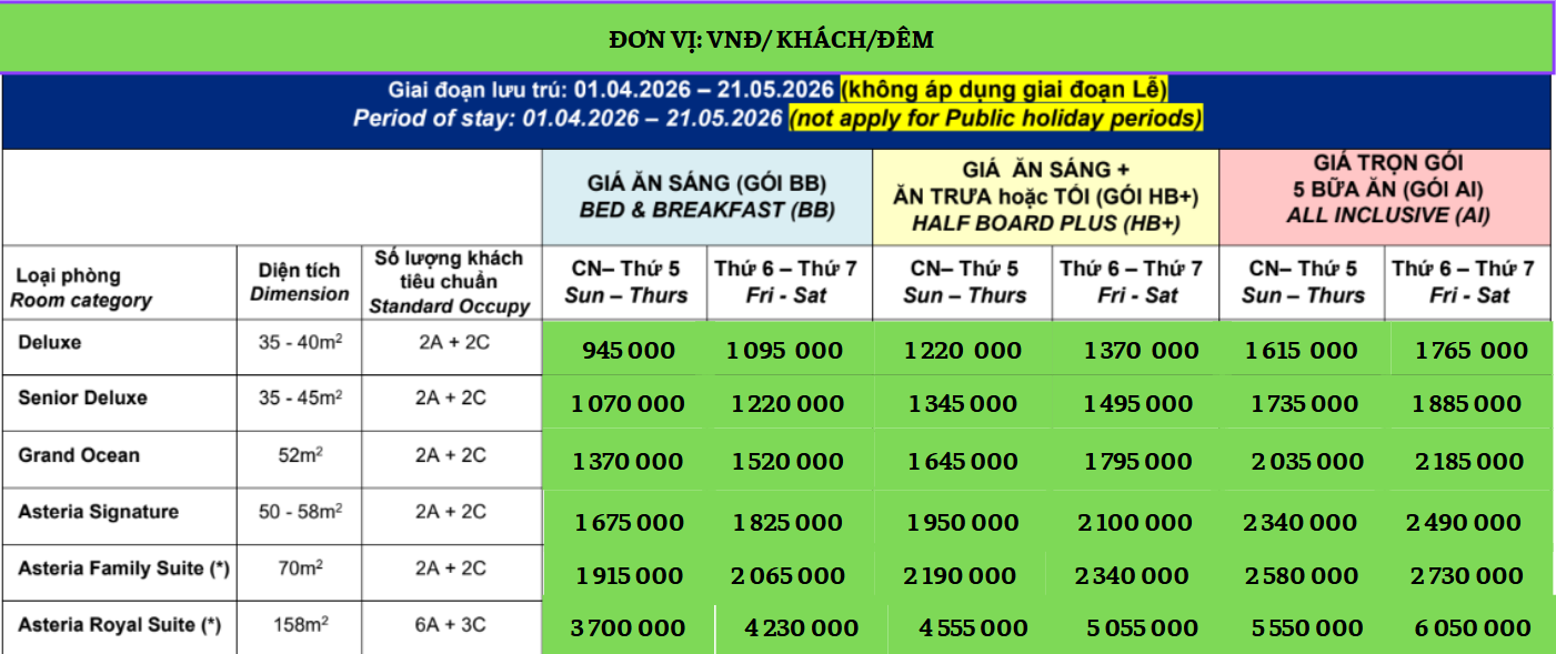 🔥 Đây là cơ hội tuyệt vời để khách hàng trải nghiệm nghỉ dưỡng cao cấp với chi phí tối ưu!