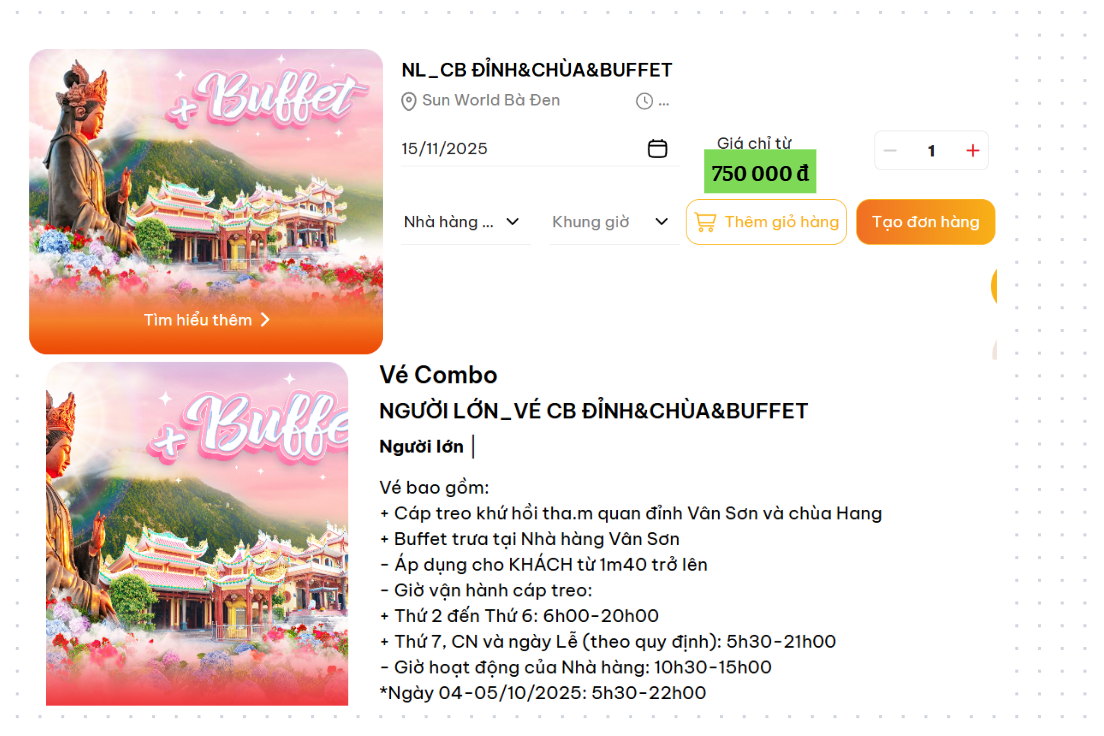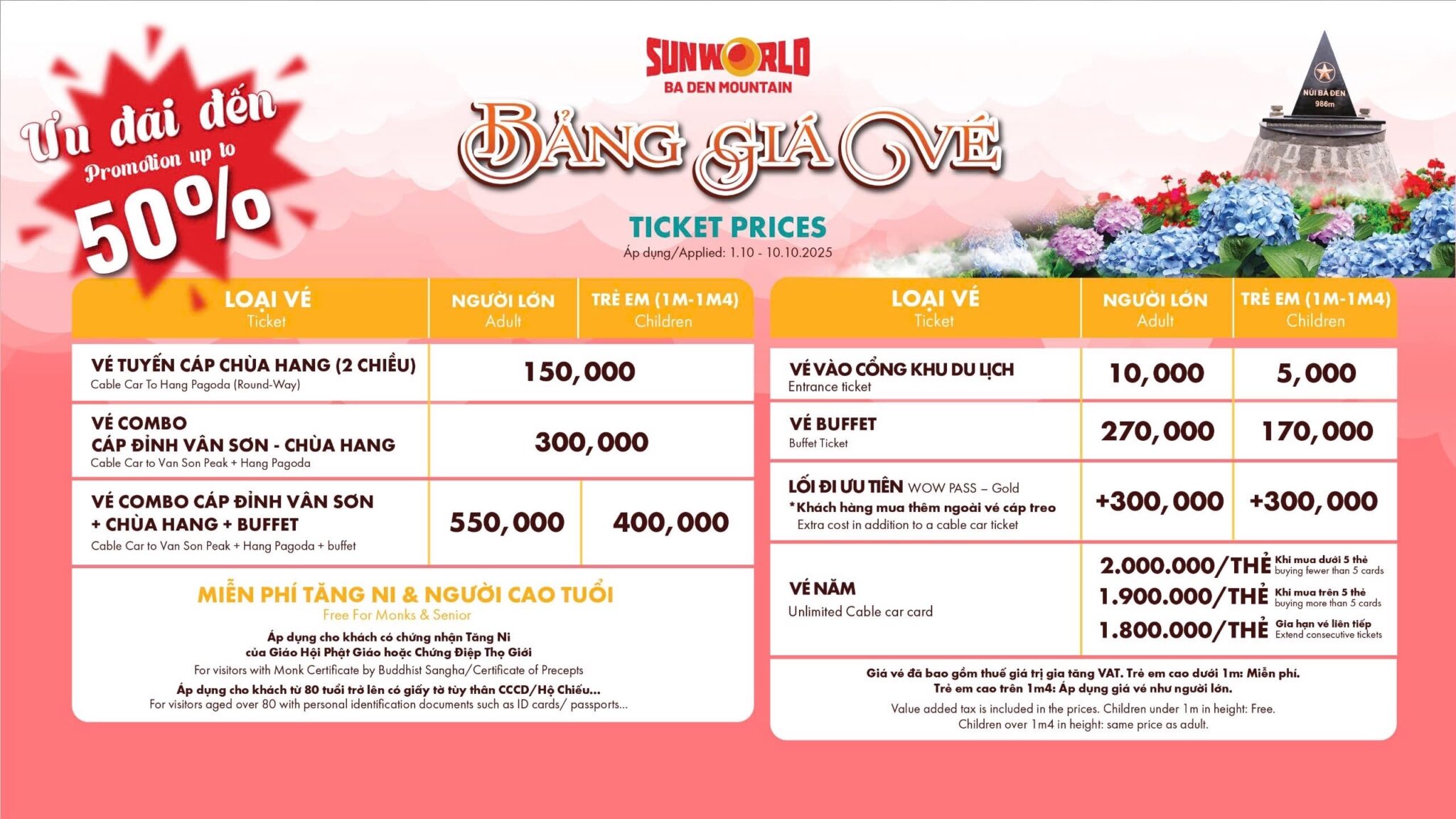 NÚI BÀ ĐEN CÁP TREO GIÁ VÉ 2025