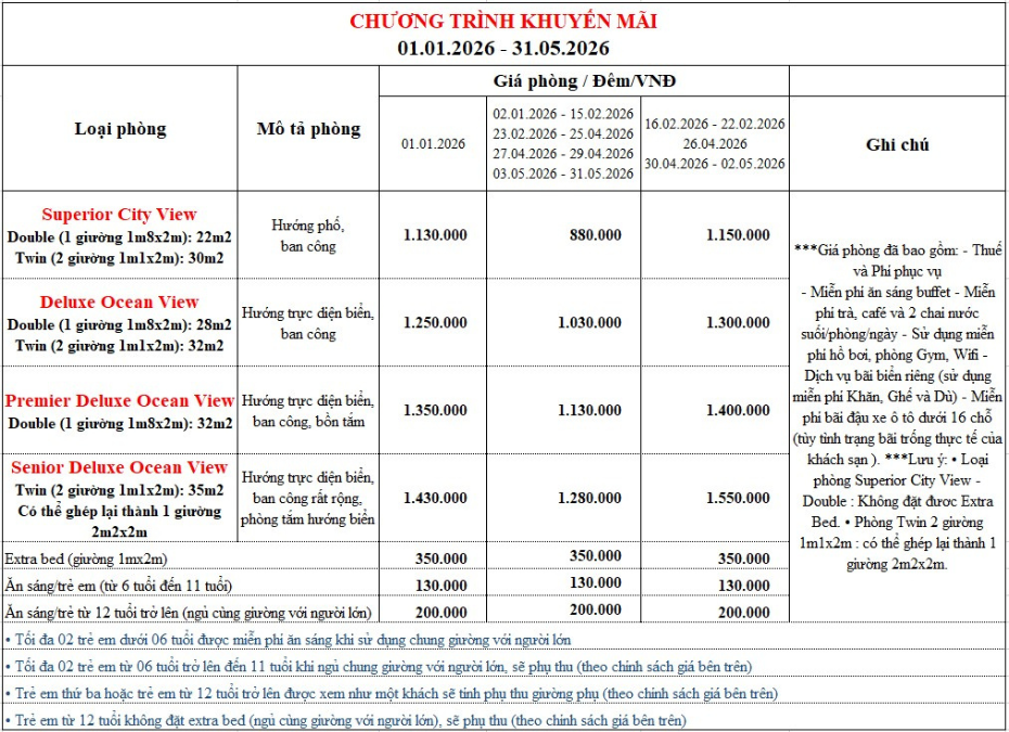 Giá phòng từ 880.000 VNĐ/P 2 KHÁCH/ĐÊM bao gồm ăn sáng