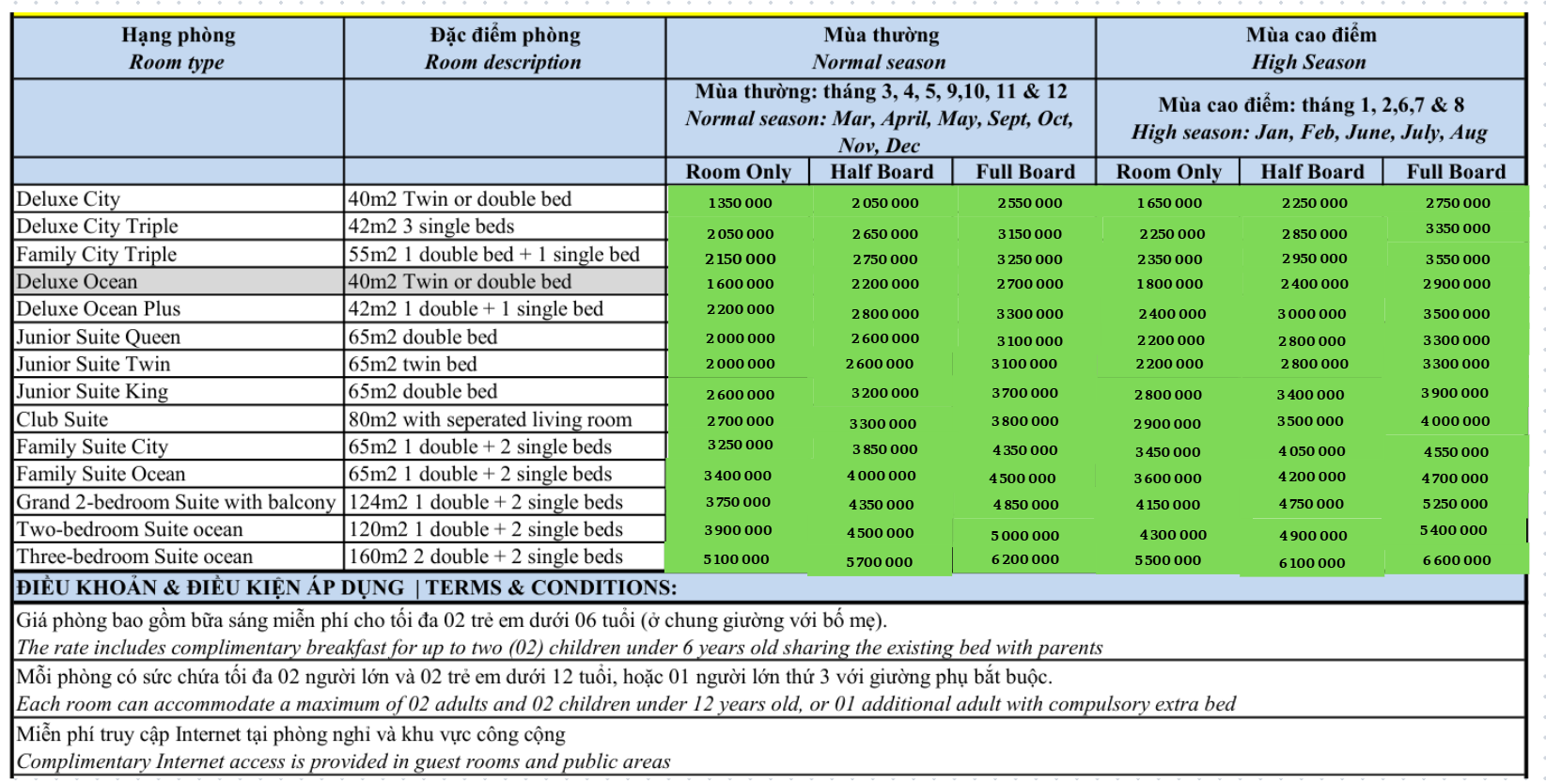 BẢNG GIÁ PHÒNG 2026