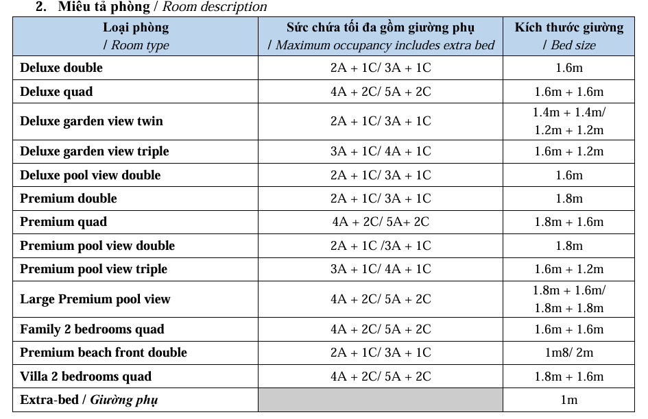 3. Khuyến mãi đặt phòng sớm / Early bird Offer: –