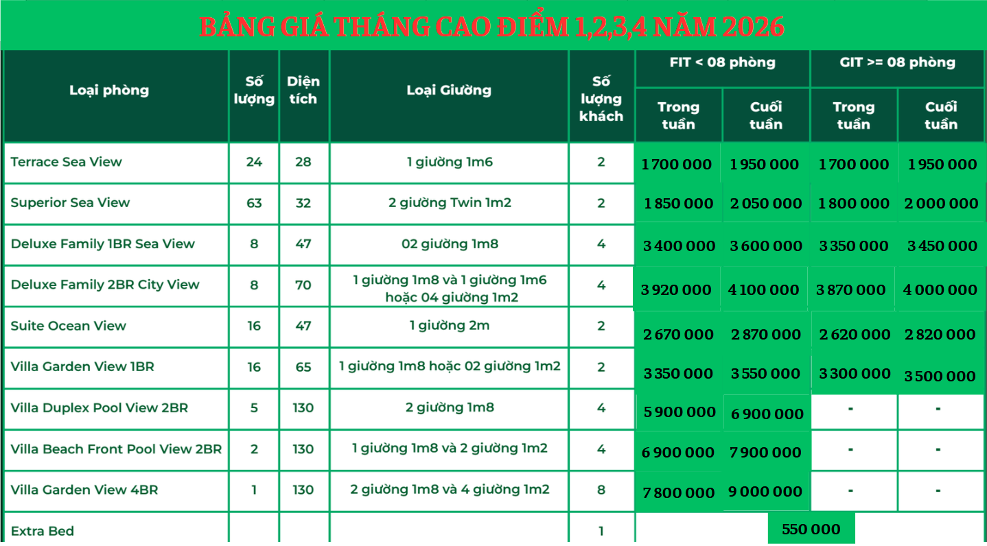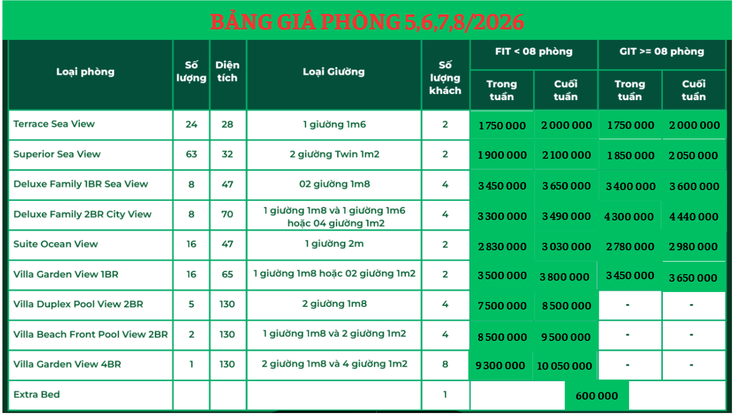 HÒN CÒ RESORT 4 SAO NINH THUẬN GIÁ PHÒNG 2026